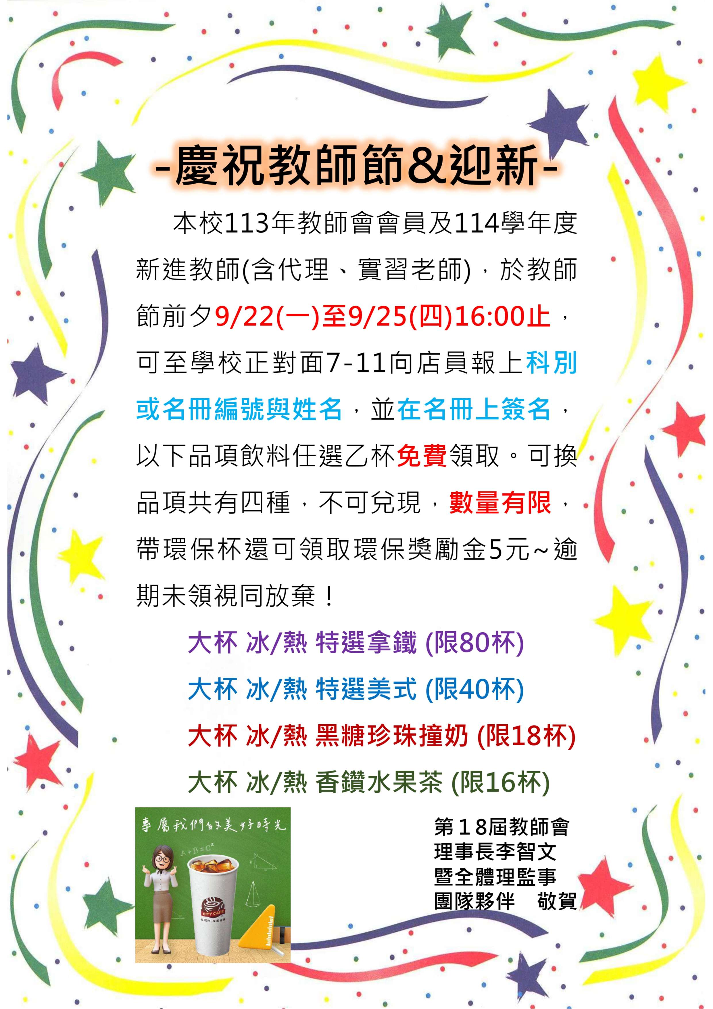 本校113年教師會會員及114學年度新進(含代理、實習老師),
