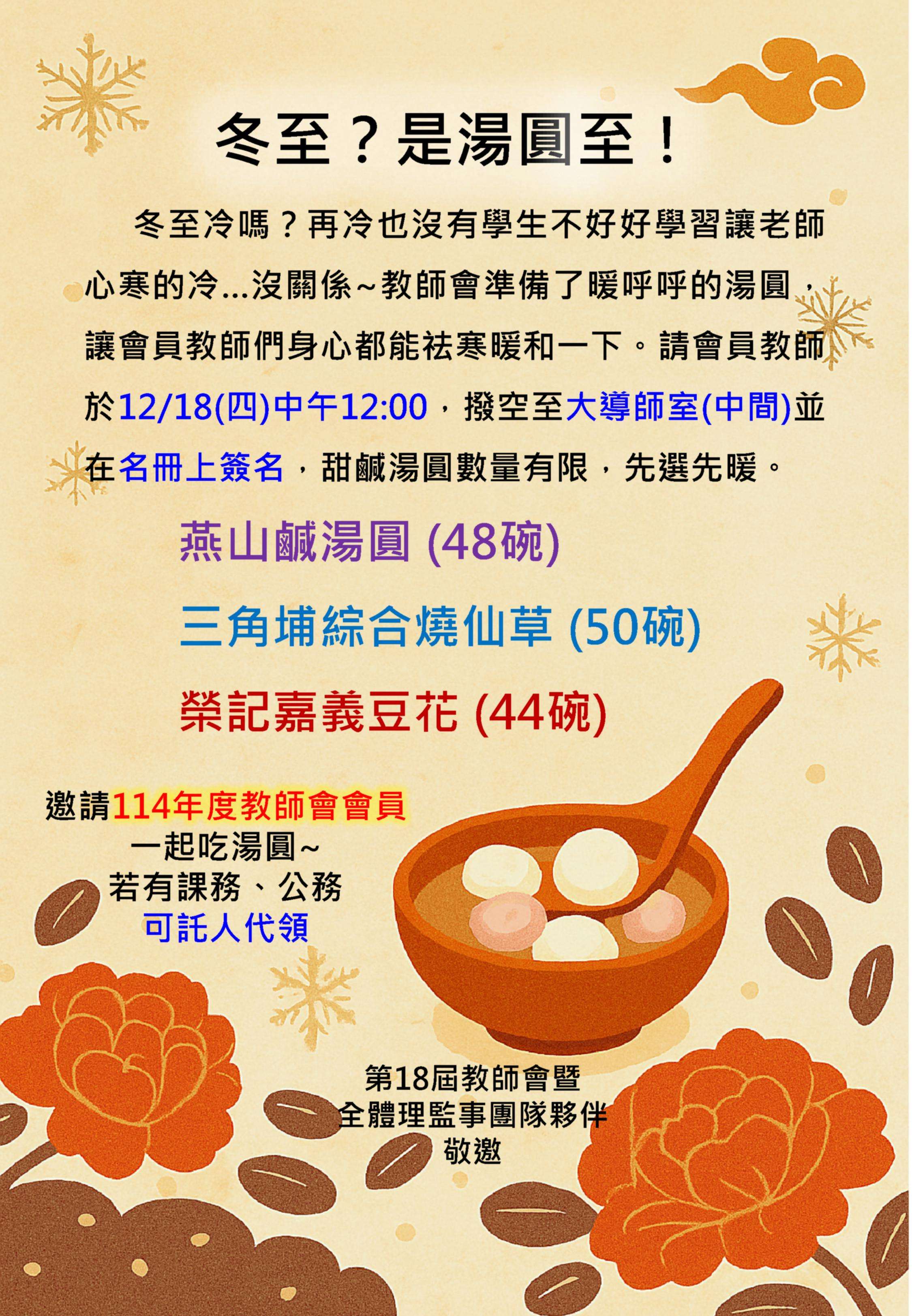 沒關係~教師會準備了暖呼呼的湯圓,
