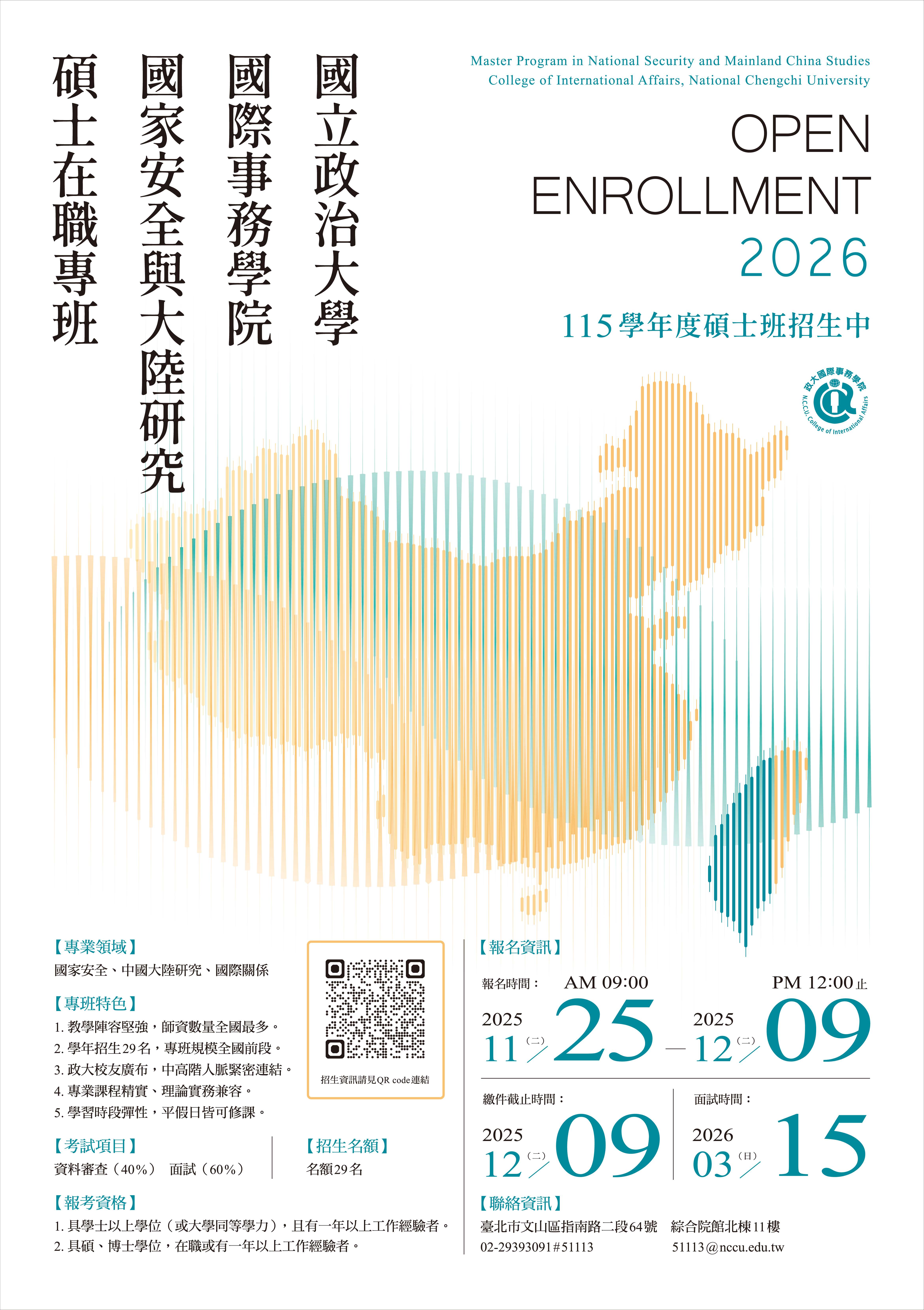 國立政治大學辦理國際事務學院「國家安全與大陸研究碩士在職專班」115學年度招生