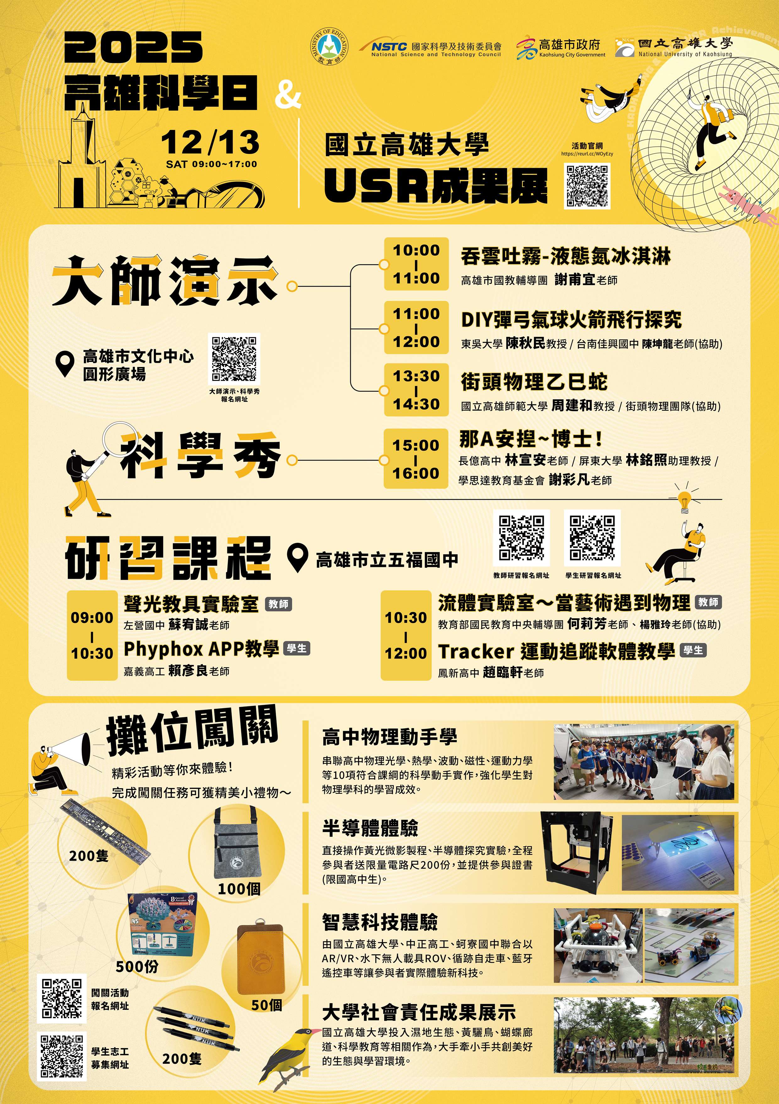 一、為推廣科學教育與分享本校師生執行USR計畫豐碩成果,辦理旨揭成果展,透過大師演示、科學秀、大眾科普、半導體製程體驗、智慧科技體驗,及教師與學生研習,以擴大各界交流。