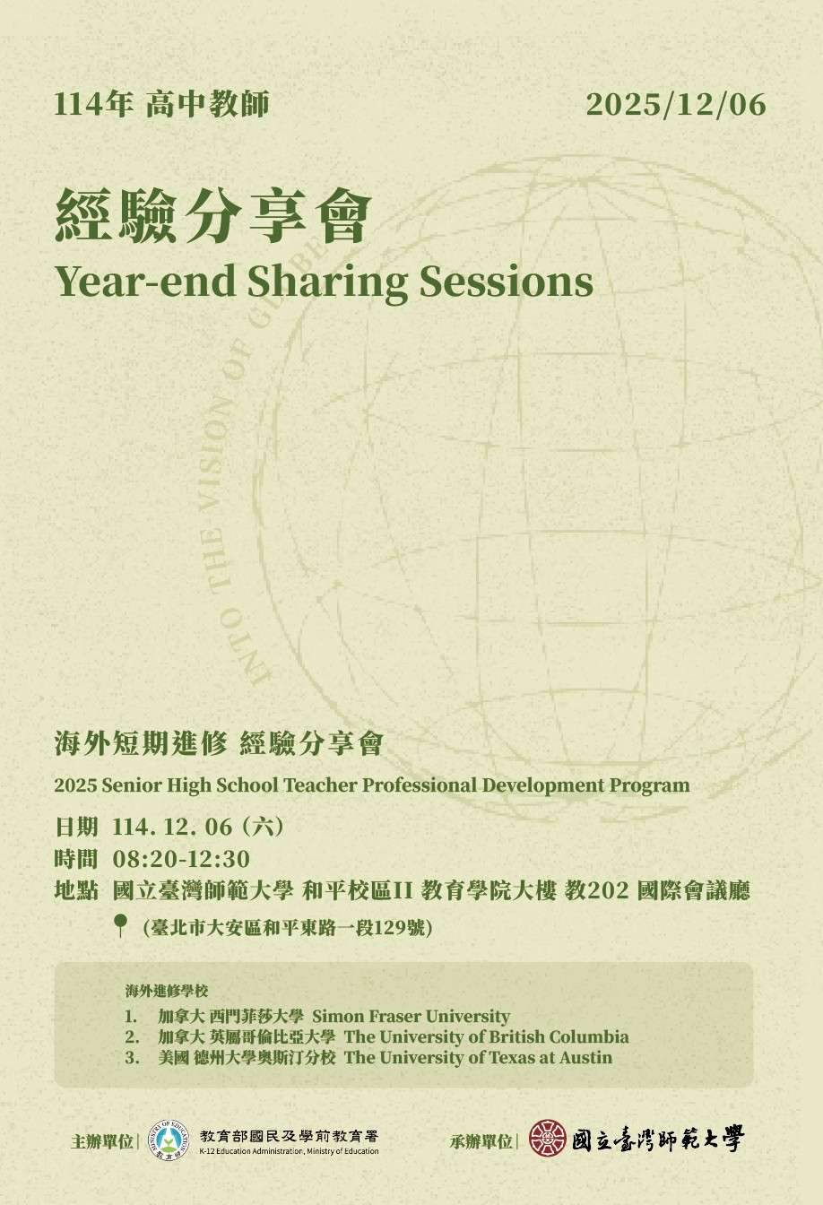 國立臺灣師範大學辦理「114年選送高級中等學校教師海外短期進修」經驗分享會