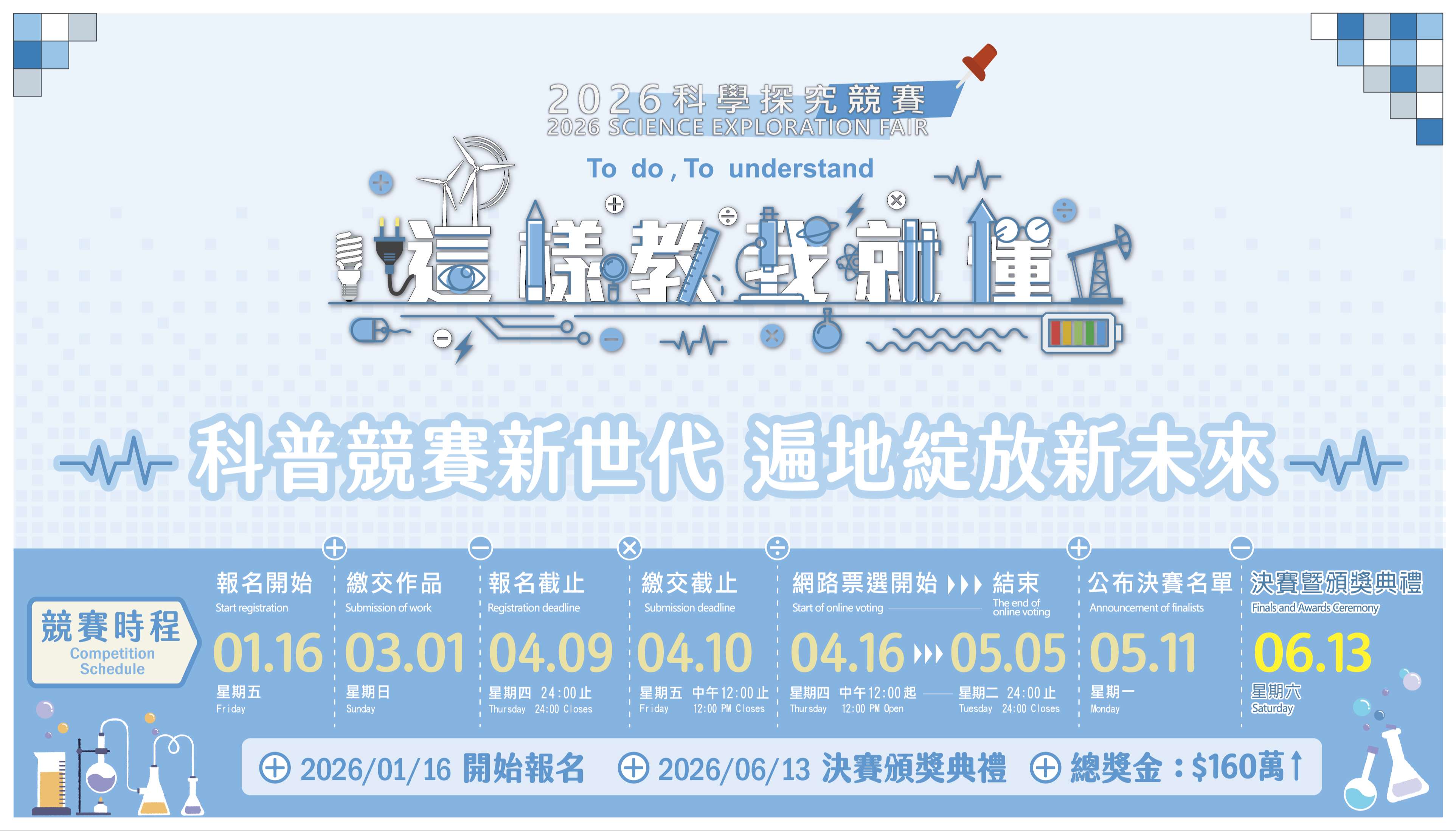 八、報名資訊、競賽方式與獎勵等相關資料請參閱附件或計畫網站(官網:https://sciexplore2026.colife.org.tw;