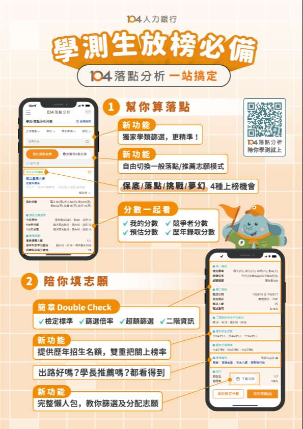 【轉知】104人力銀行提供「104學測落點分析」幫助學生完成個人申請志願選填、提供教師教學簡報,歡迎多加運用!