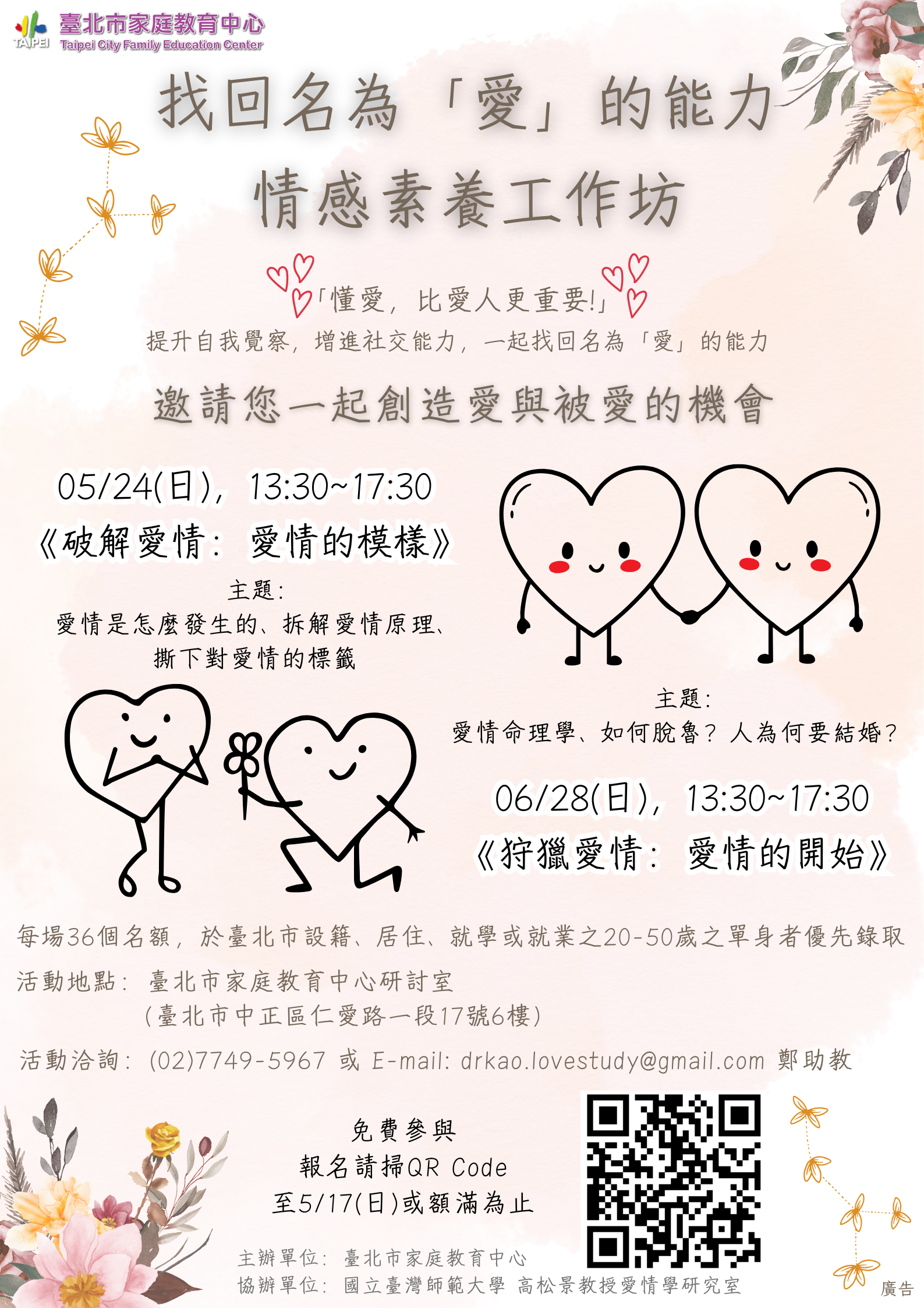 臺北市家庭教育中心辦理115年度「找回名為『愛』的能力—情感素養精進工作坊」活動