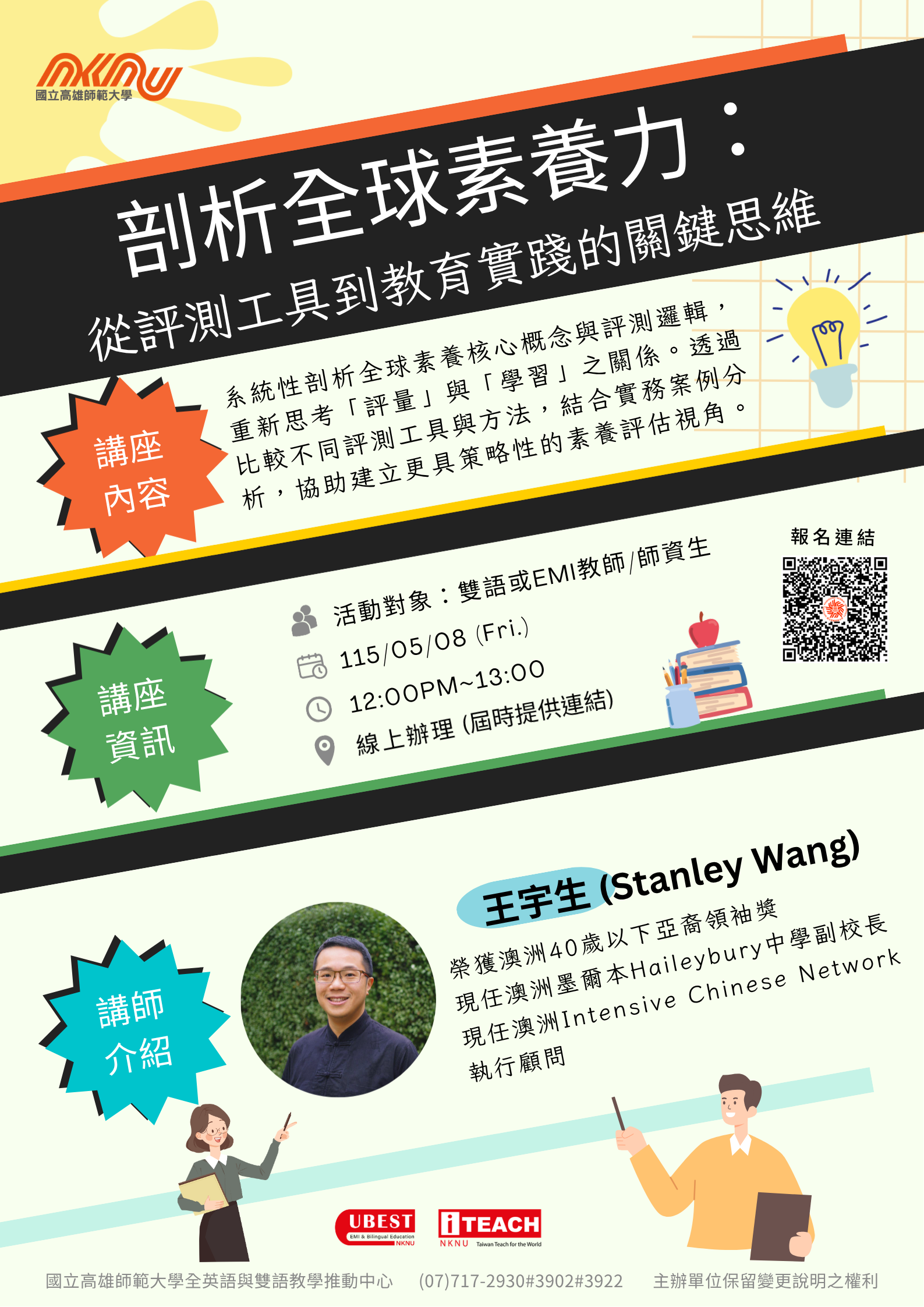 國立高雄師範大學辦理「【線上講座|剖析全球素養力】從評測工具到教育實踐的關鍵思維」講座