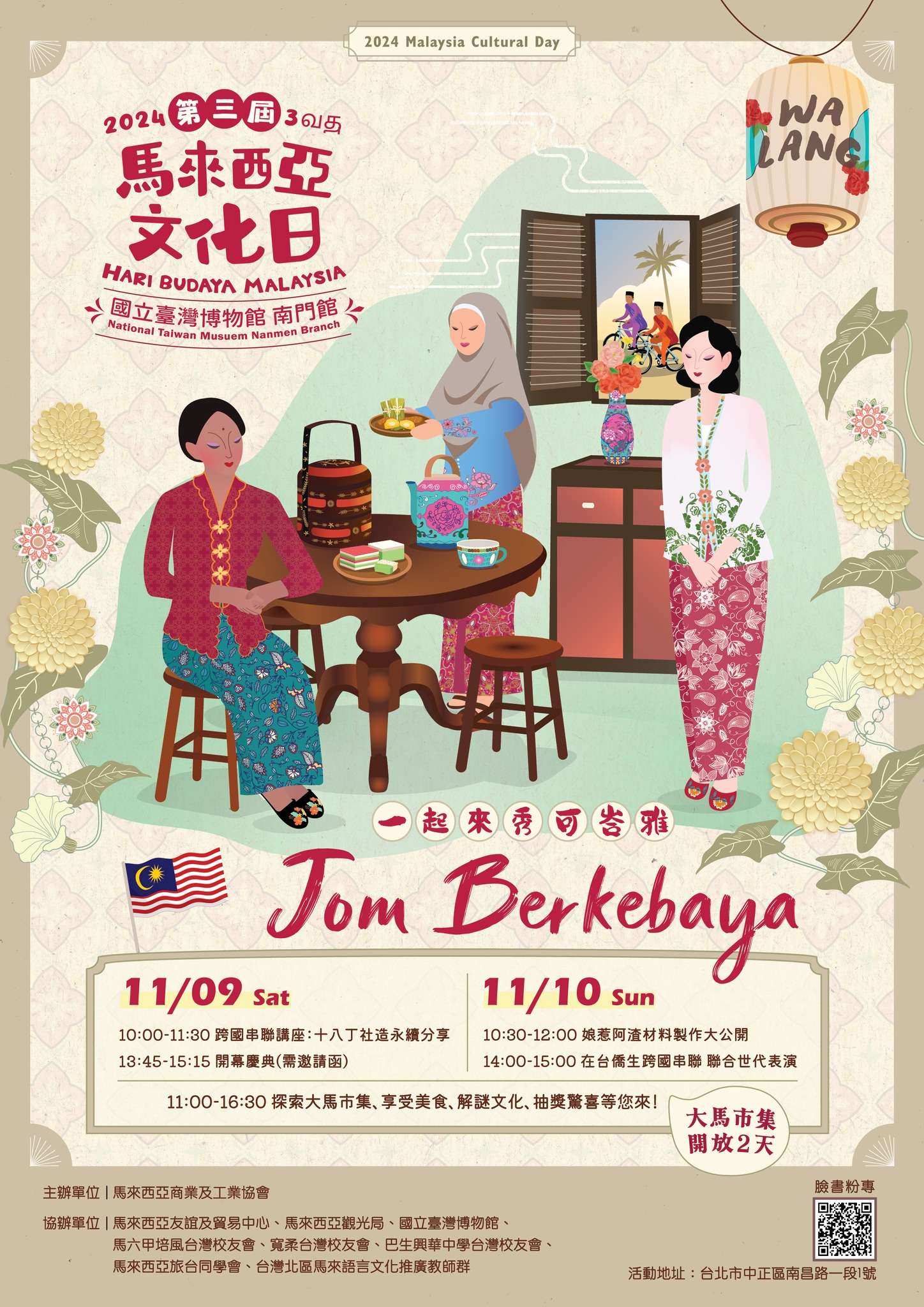 二、本次「2024第三屆馬來西亞文化日」將於113年11月9日、10日於本館南門館辦理,活動說明如下: