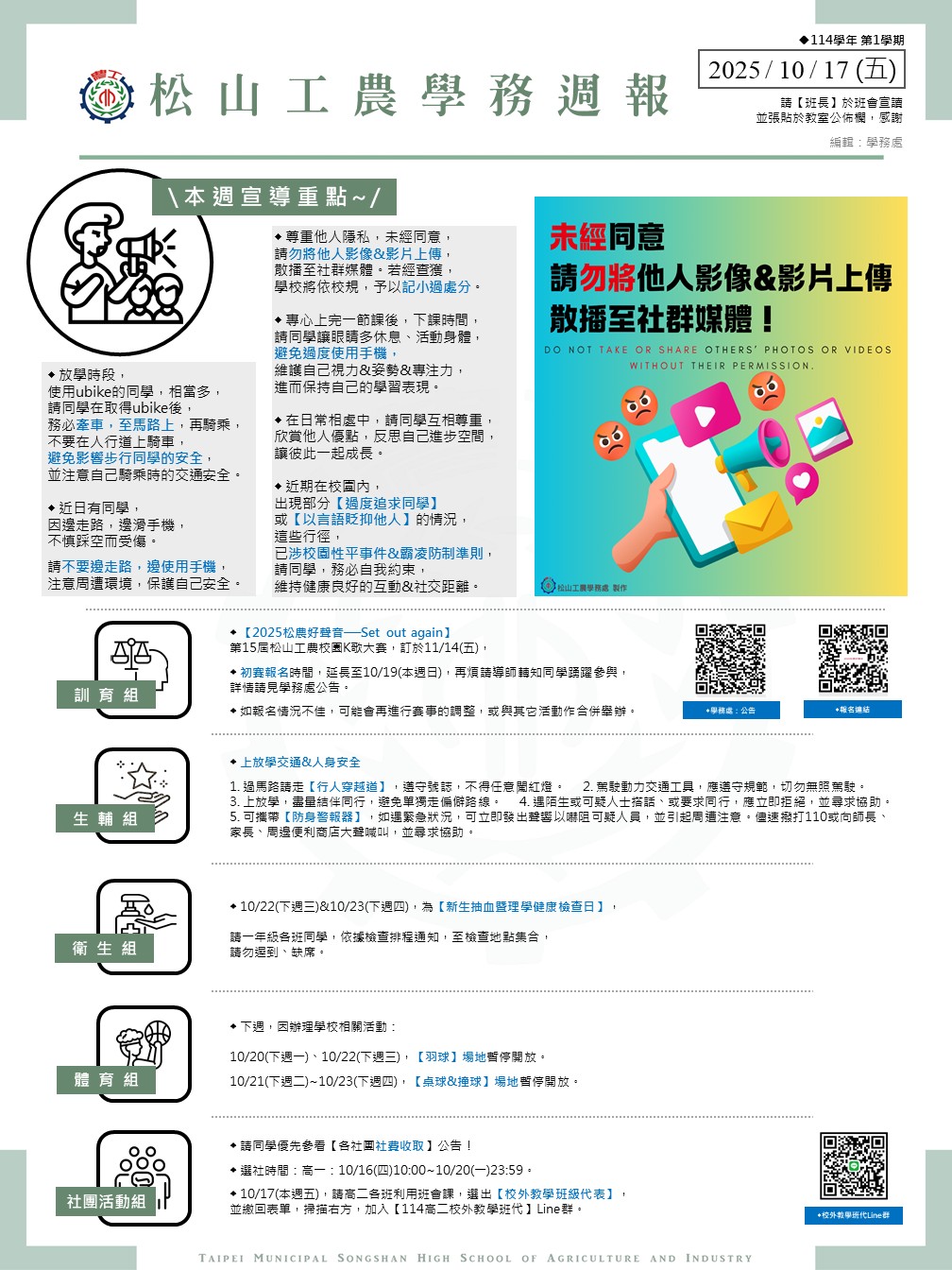 學務處各組其它資訊,請詳閱紙本週報,或本公告的電子檔,感謝。