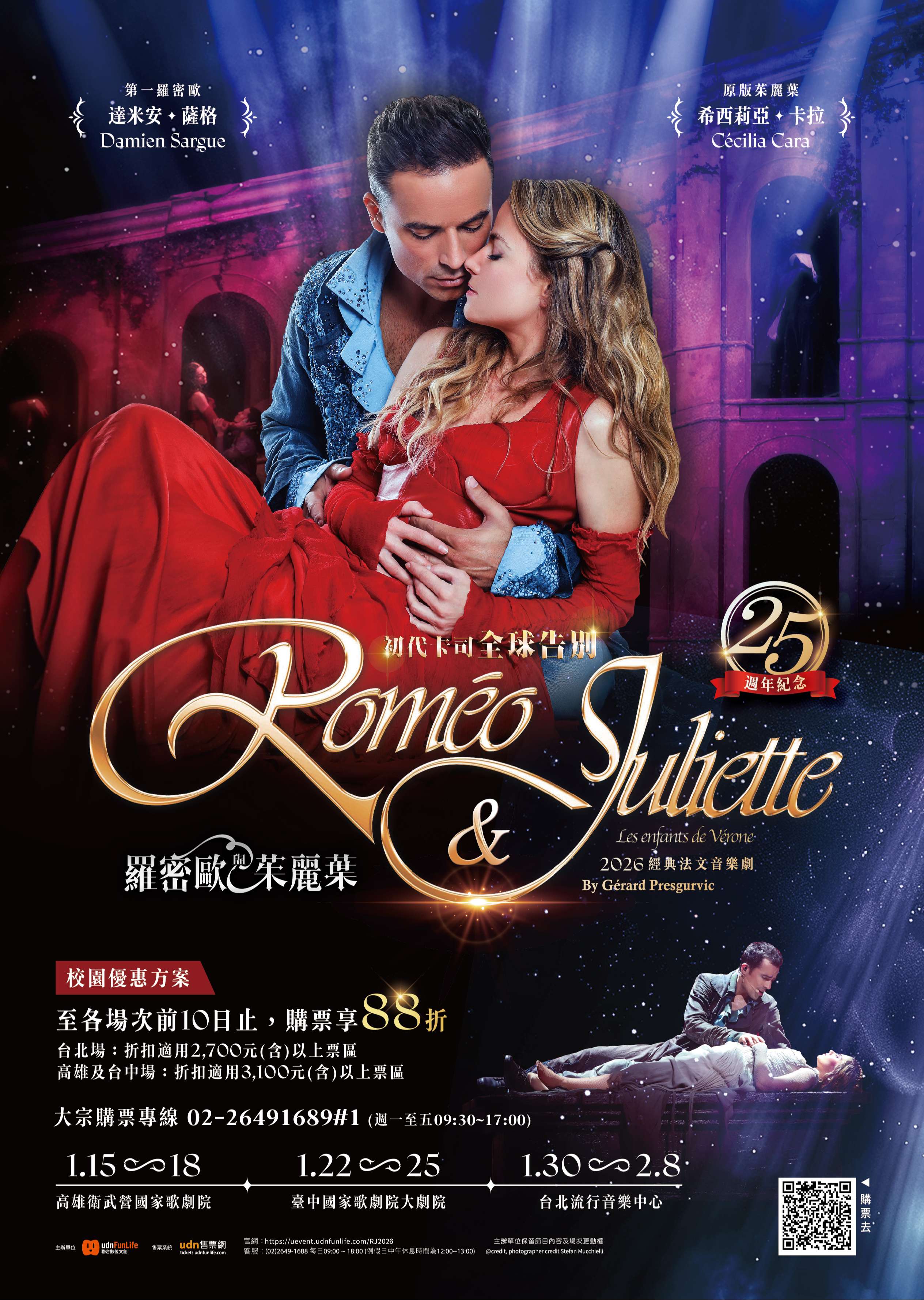 適逢音樂劇25周年同時也是初代卡司告別巡演,讓這次在台灣的演出更具紀念性。法文音樂劇以獨樹一格的「演唱會」形式製作打造,特別強調「音樂」與「演員魅力」,以「歌」帶「戲」是法式音樂劇製作的順序與模式,藉由歌曲詠唱以及雋永詞彙的表達,再加上多樣化背景音樂襯托,讓演員的情緒起伏及情感傳遞更加深刻。誠摯推薦師生前來觀賞國際級精彩演出,並藉此增進對各類表演類型的了解。