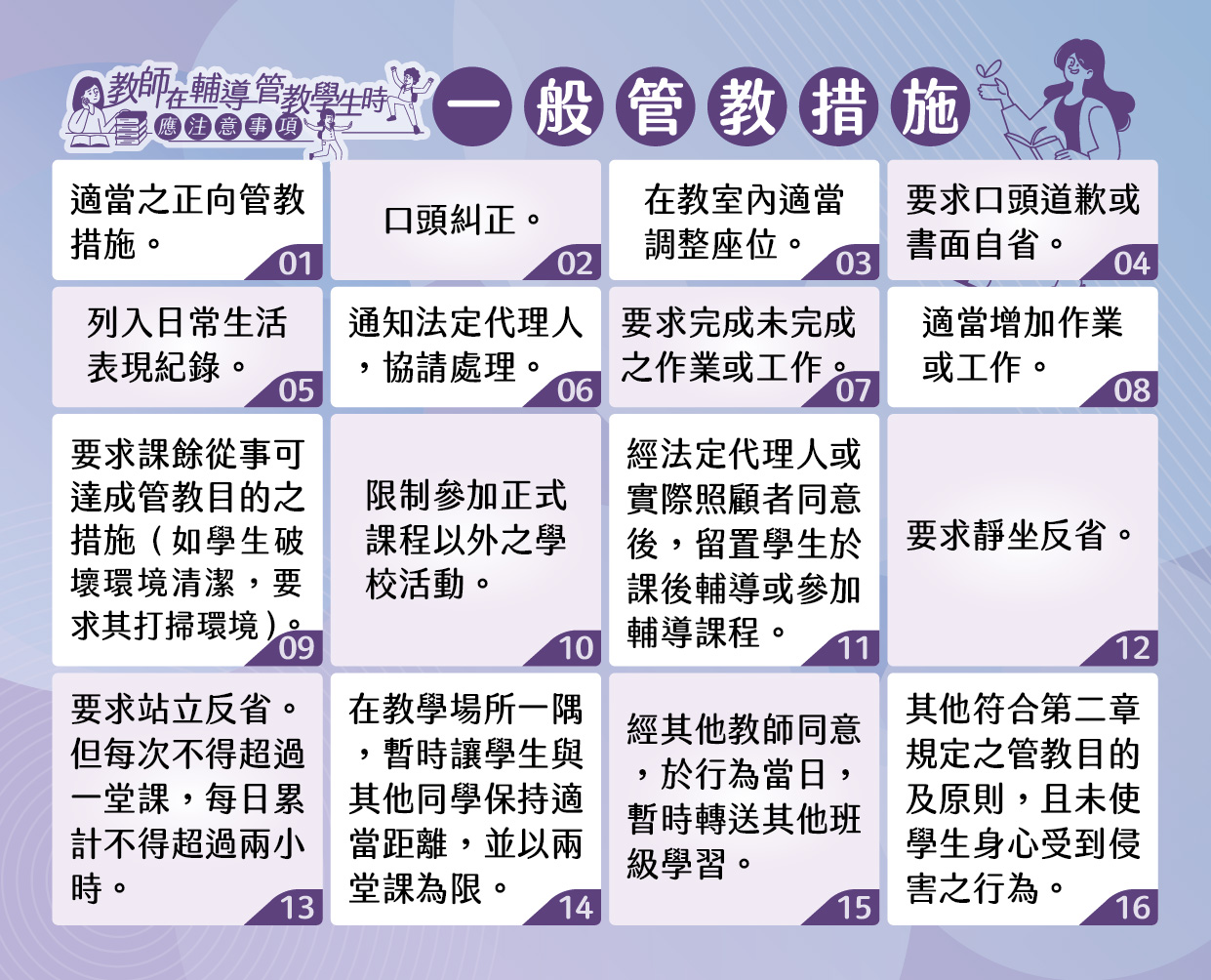 請參見教師一般管教措施及注意事項圖文宣導資料。