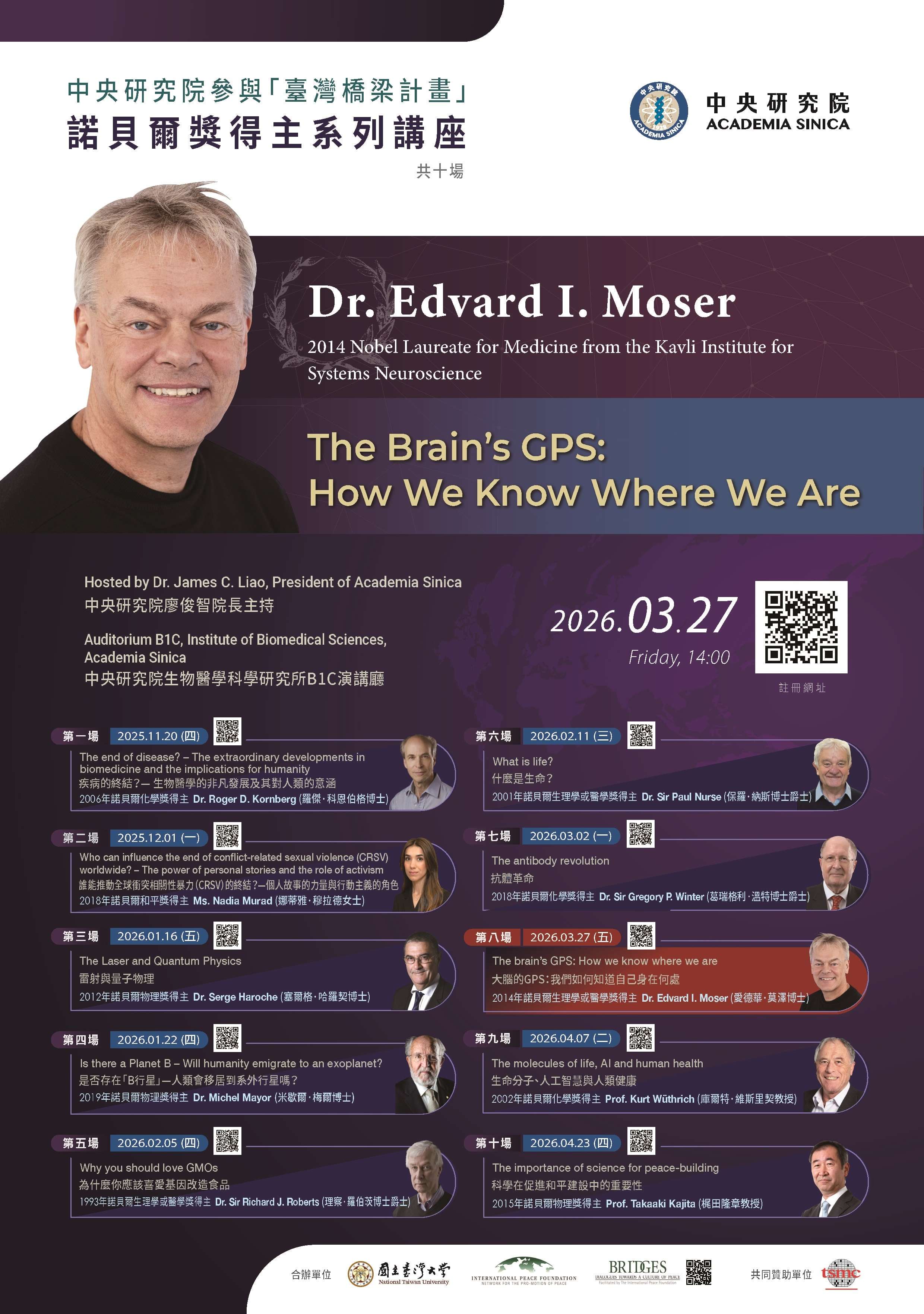 一、「臺灣橋梁計畫」自114年11月起至本(115)年4月,共將邀請 31 位諾貝爾獎得主訪問本院及全臺十餘所大學,相關資訊請參閱網站:https://www.peace-bridges.net/。