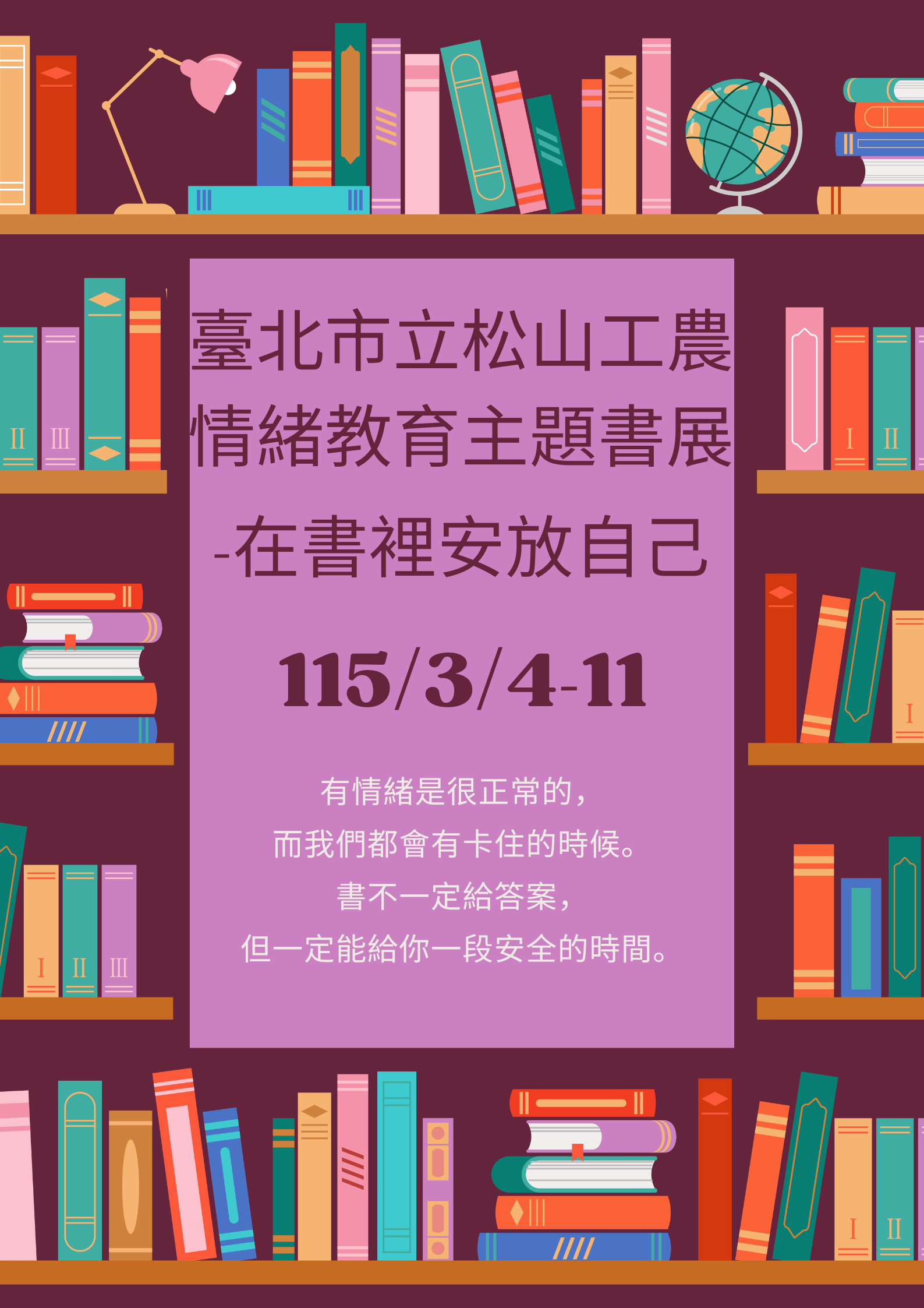 輔導室於2026/3/4-11協同圖書館舉辦臺北市立松山工農情緒教育主題書展