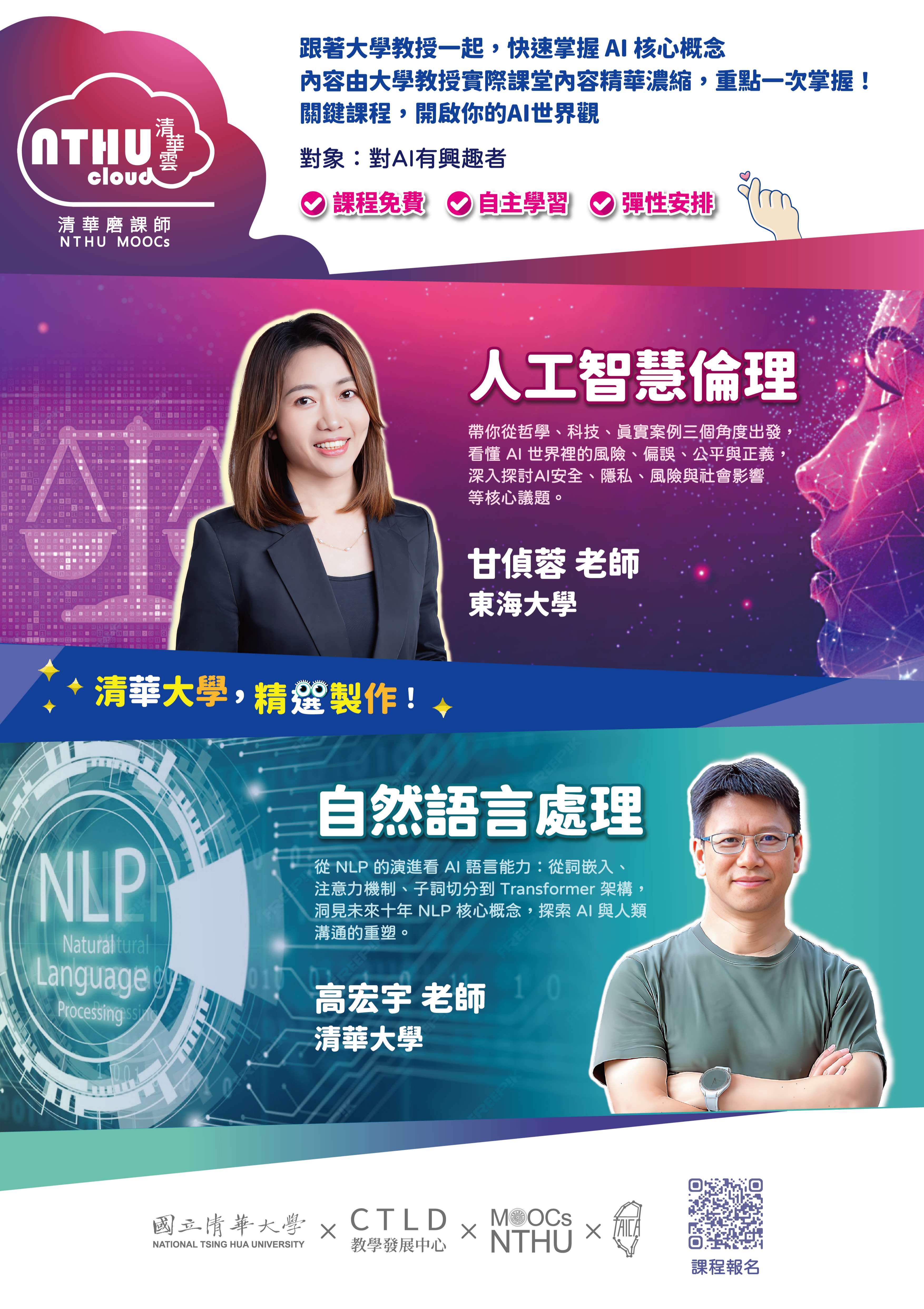 清華大學磨課師製作三門人工智慧數位課程資料,陸續於今年10月至12月正式開放免費修習:
