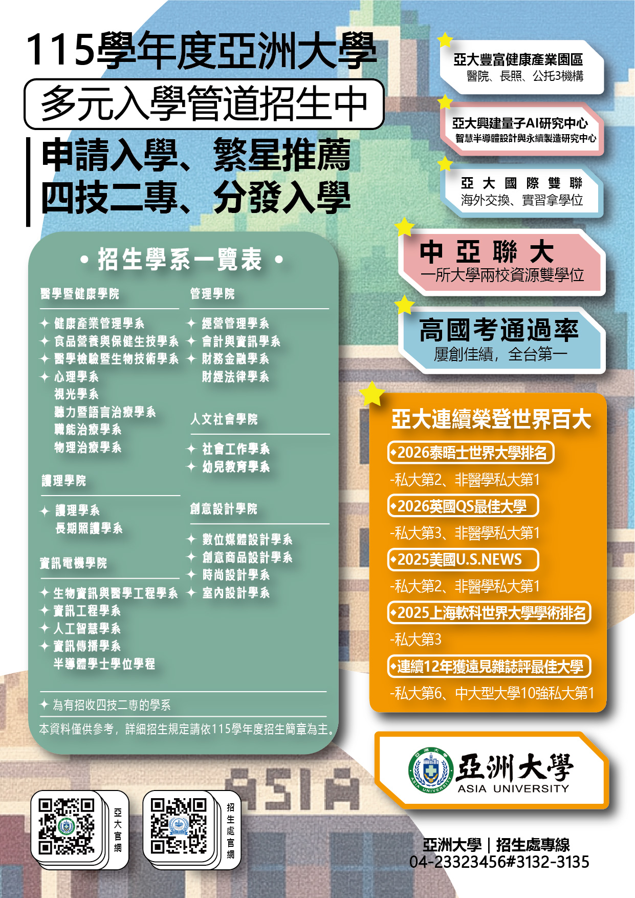 四、報名時間:線上報名即日起至115年3月06日(五)17時止,現場報名為115年03月07日(六)12時30分至13時。