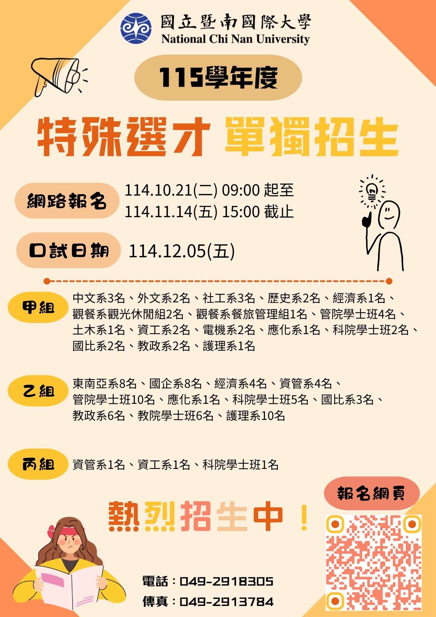 四、招生簡章供免費下載,網址:https://exam.ncnu.edu.tw /。