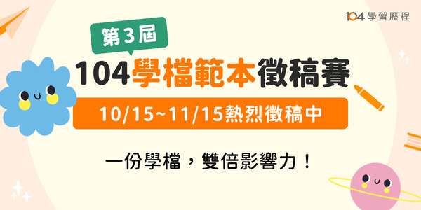 二、內容:邀請全臺高中、職學生投稿,高一至高三皆可參 加,不限當年度學習歷程!通過審核的作品將公開於平 台,並提供參賽獎狀與獎金。