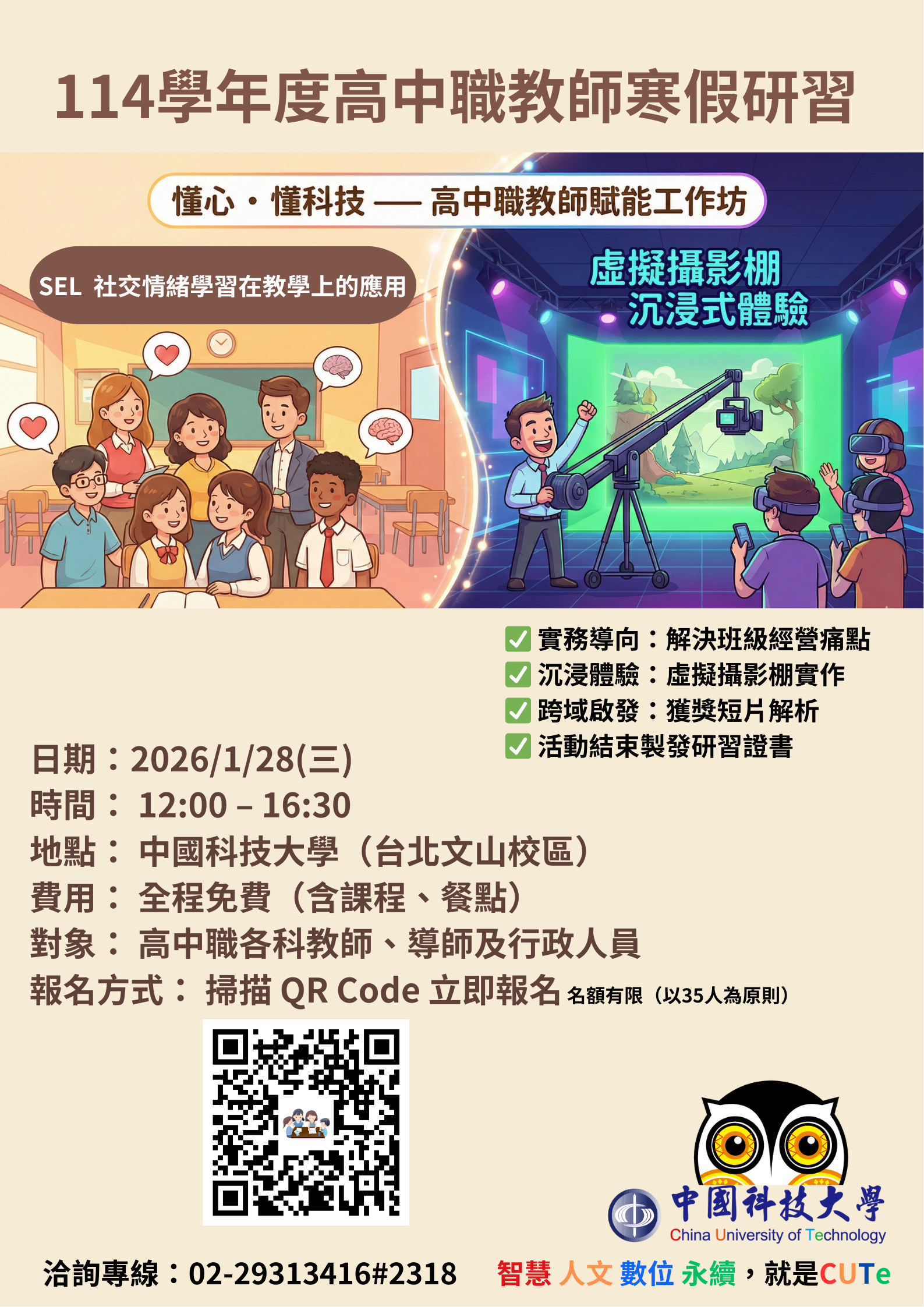 中國科技大學辦理「114 學年度高中職教師寒假研習—SEL教學策略 × 虛擬攝影棚沉浸式體驗」活動
