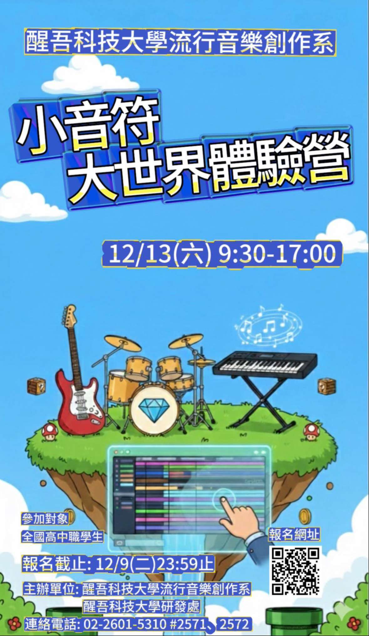 二、相關活動訊息請至醒吾科技大學流行音樂創作系最新消息(https://c016.hwu.edu.tw/Post?PId=101818) 查詢,活動聯絡人;沈慧君小姐,(02) 26015310分機2571。