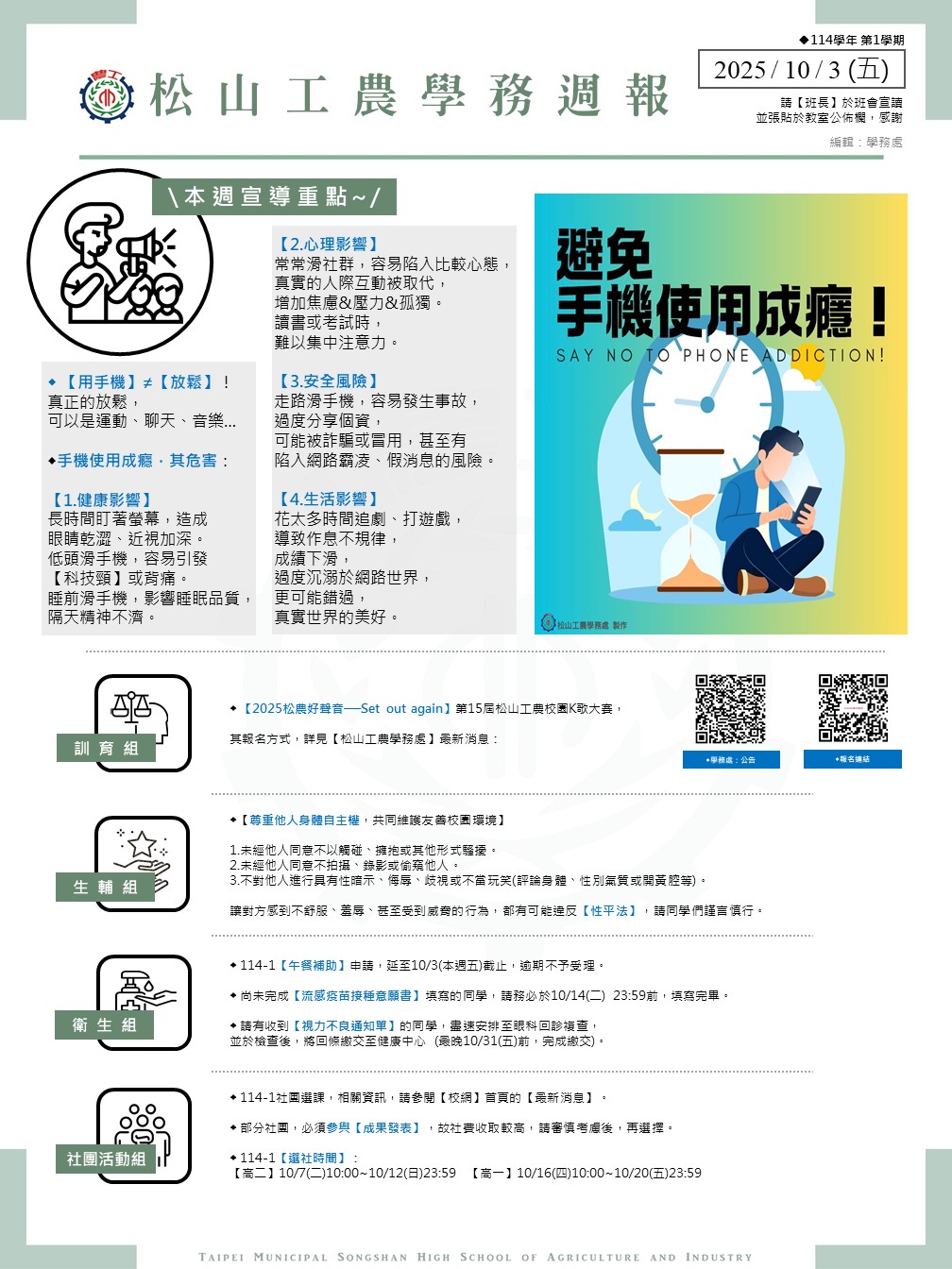 本週的《松山工農學務週報》(114學年,1002),