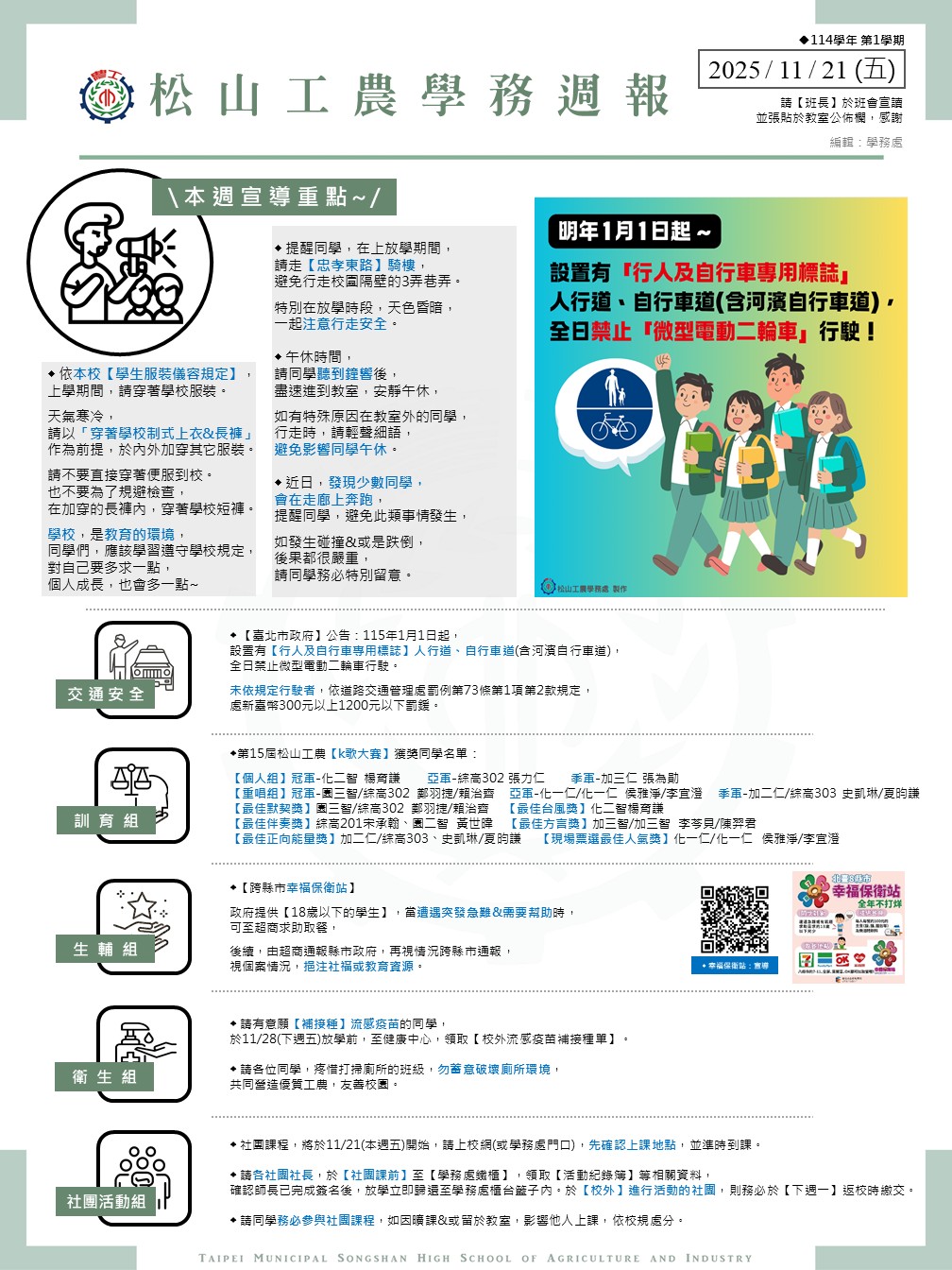 學務處各組其它資訊,請詳閱紙本週報,或本公告的電子檔,感謝。