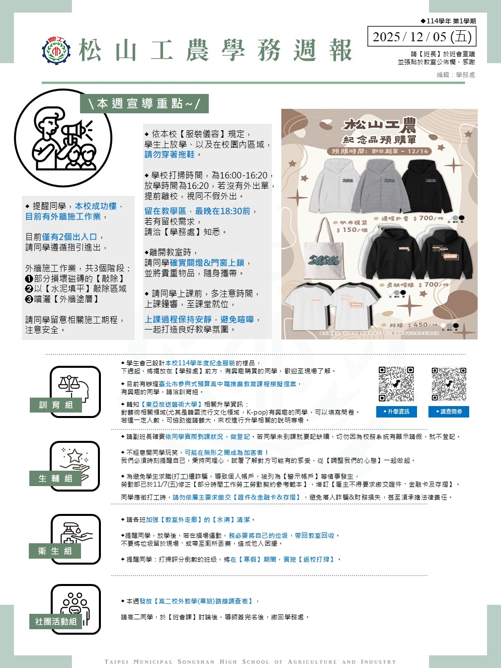 學務處各組其它資訊,請詳閱紙本週報,或本公告的電子檔,感謝。